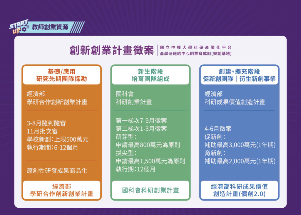 教師創業資源-國科會、經濟部創新創業計畫徵案申請說明