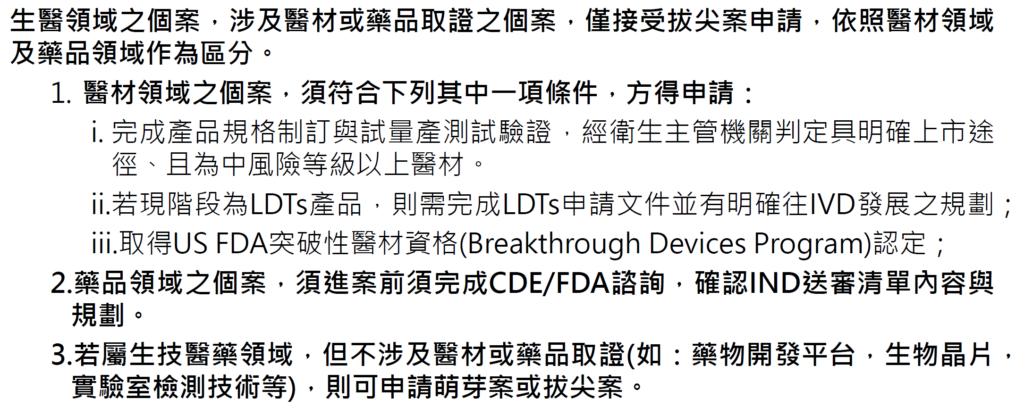 「生醫領域」申請個案應符合下方規範,敬請詳閱評估: